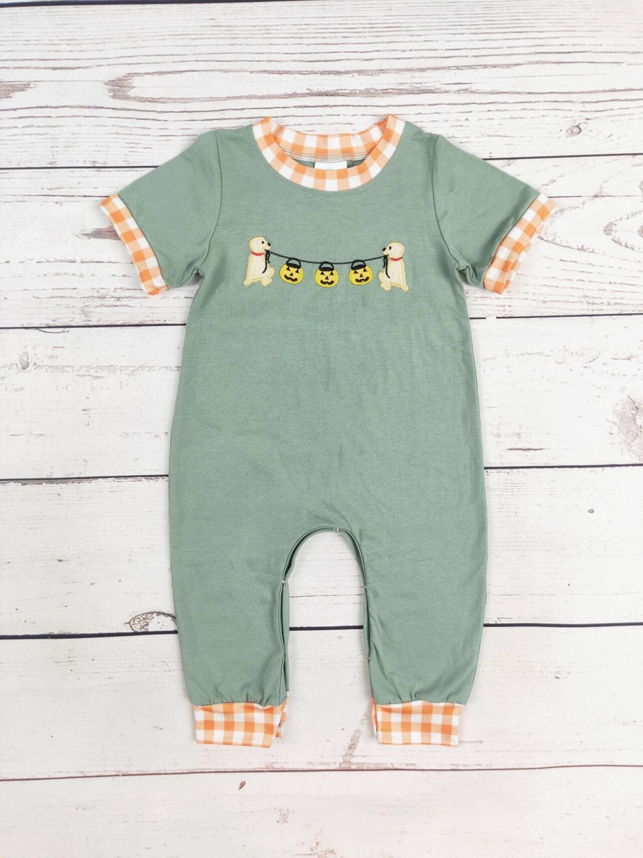 Baby Boy Pumpkin Appliqué Halloween Romper