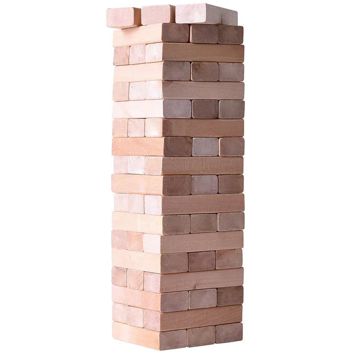 Get your head out of your apps! Enjoy the classic tower stacking game suitable for up to 4 players! Simple, solid, and timeless strategy game. To set up the Tower place three blocks per layer crosswise. Includes 48 hardwood blocks for 16 layers. Write tasks on each block, True/False, challenge your opponents. Mad Man, masters of men's gifts. Material: Wood. Dimensions: 14" x 8"